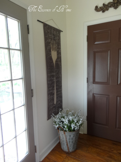 I moved the hanging fabric wall art to the other side of the french doors and repainted the interior door brown to match the rest of the house.